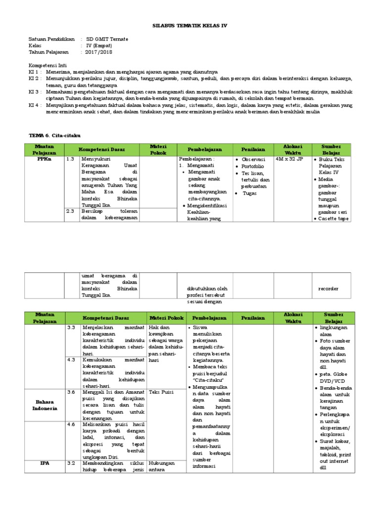 Jika hasil ingin bagus putar video. Silabus kelas 4 sd kurikulum 2013 revisi 2018 ini dibuat sesuai dengan buku kelas 4 kurikulum 2013 revisi 2018. Silabus tematik terpadu kelas 6 sd/mi terdiri dari 9 tema. Jika artikel ini anda butuhkan silakan download file silabus dibawah ini. Rpp tematik kelas 2 sd silahkan unduh link di bawah: